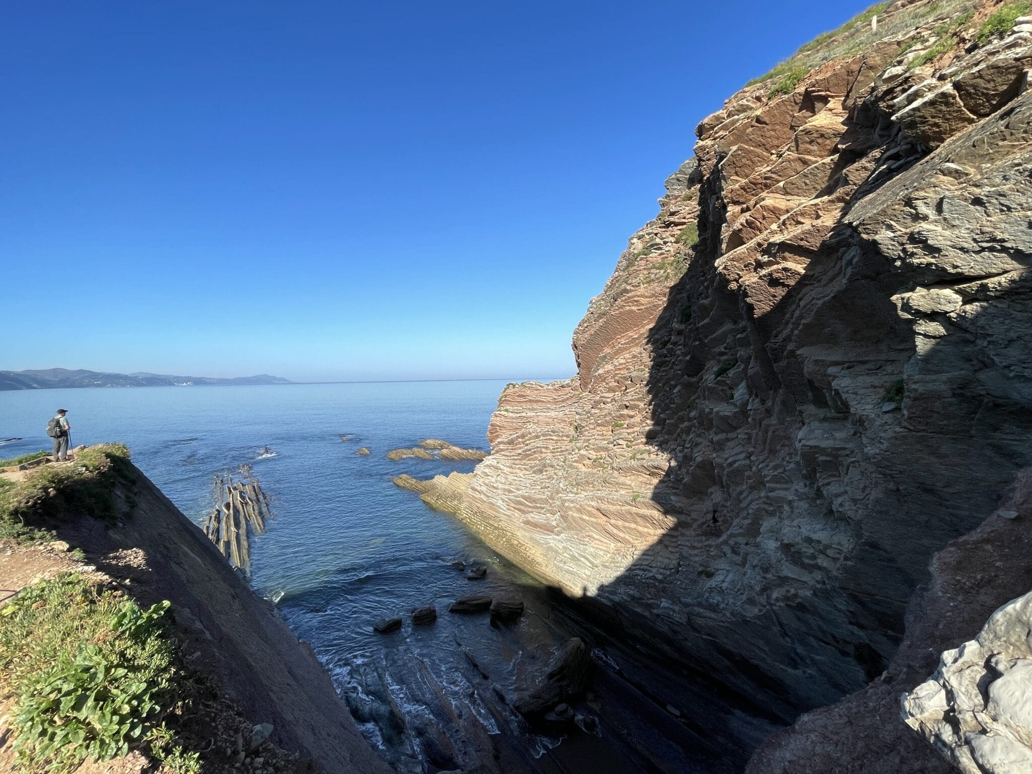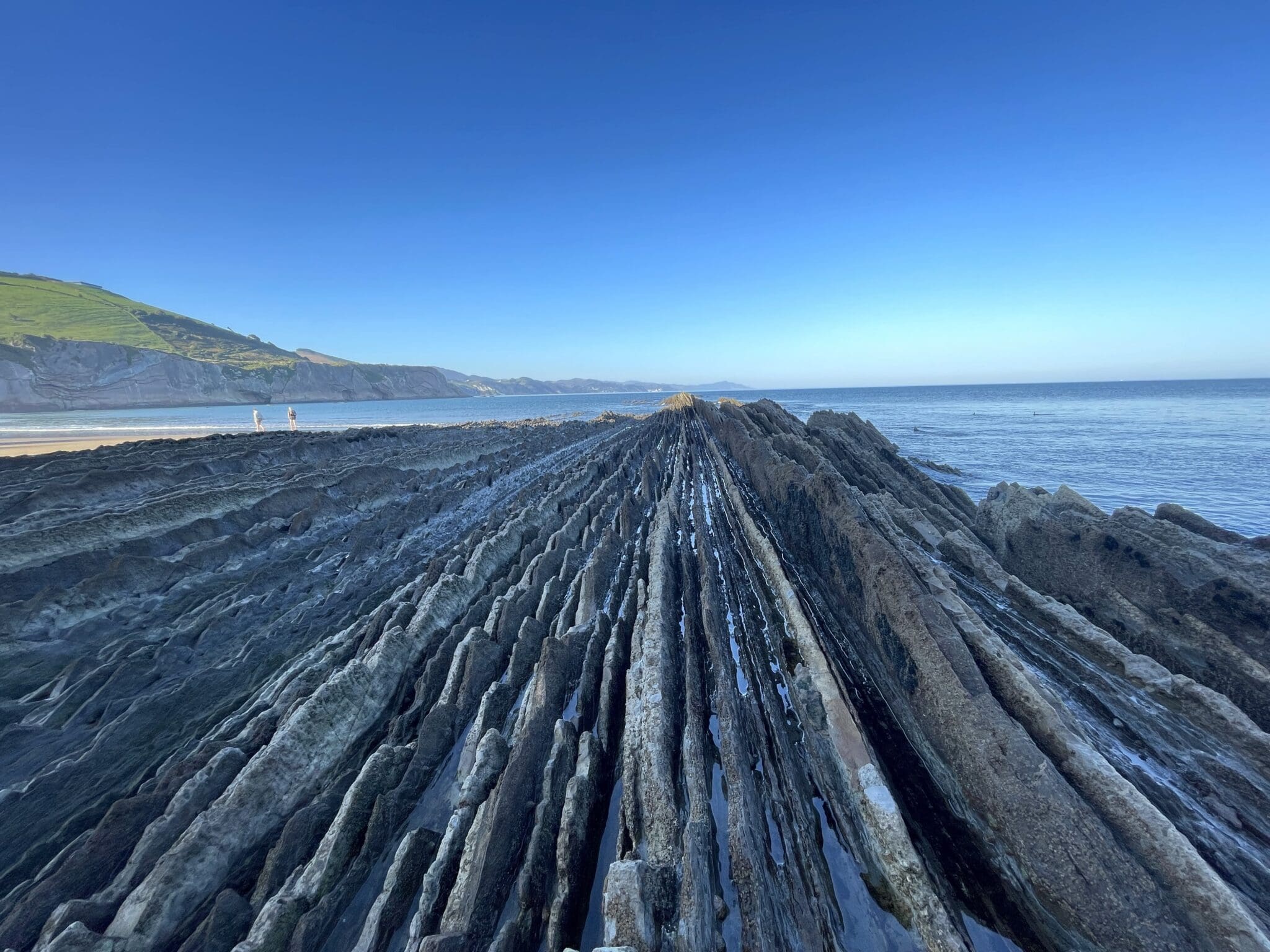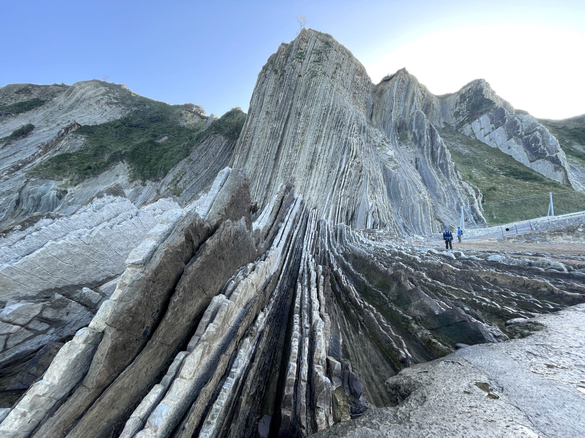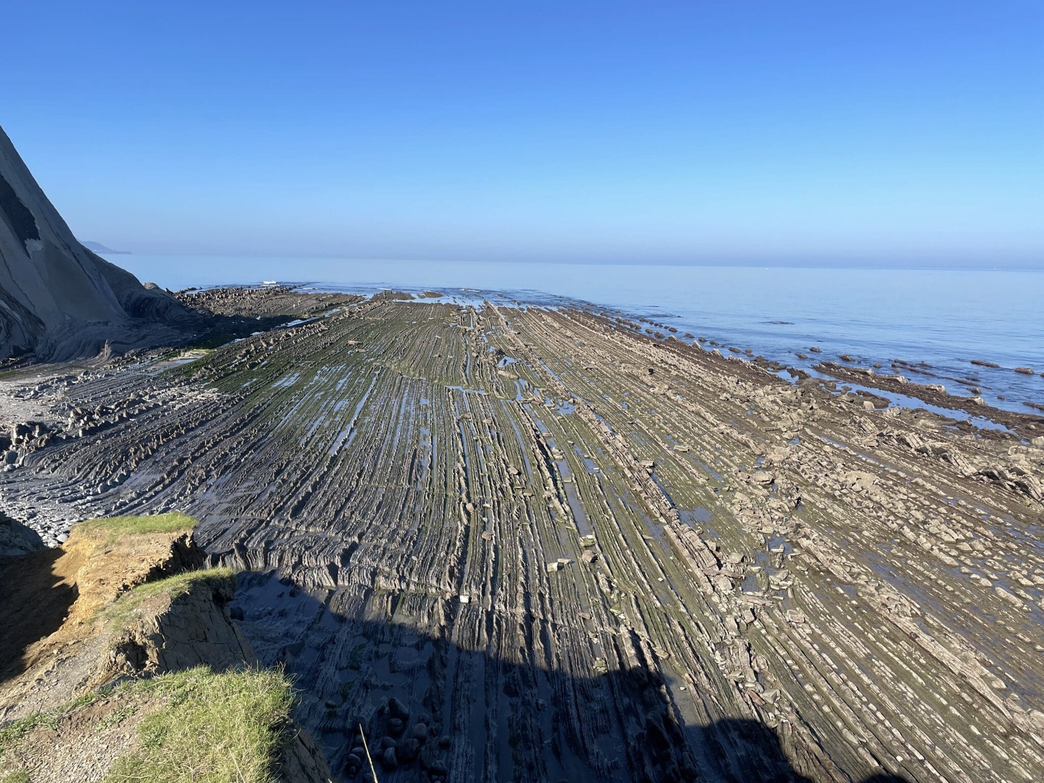 Très belle journée ensoleillée de 25 degrés encore. C’est juillet en novembre. Superbe vue dans le Geoparque Basque. Formation géologique exceptionnelle de lattes de pierres dâtant de 60-65 millions d’années. Nous sommes dans un superbe camping pour 5 jours.