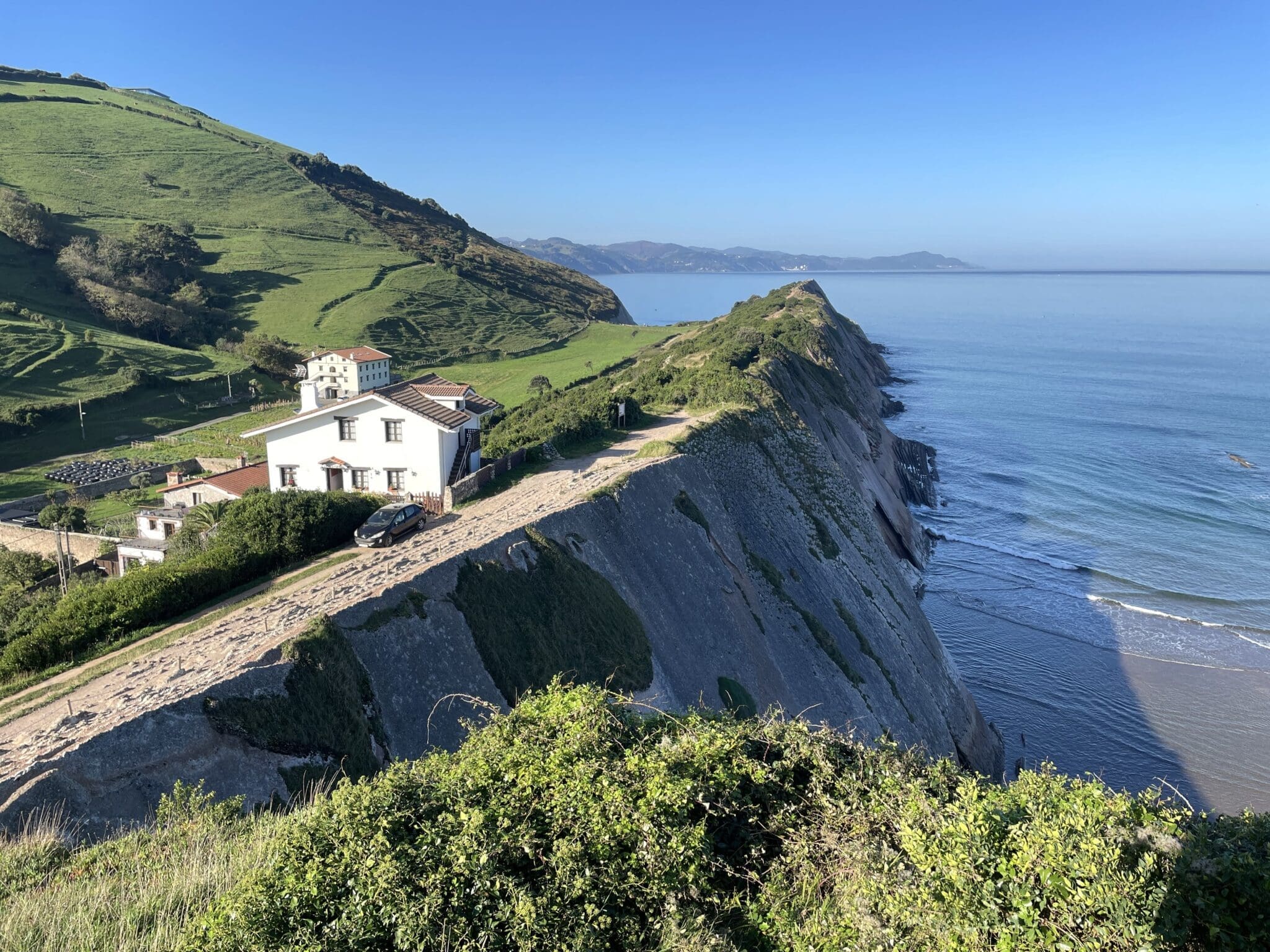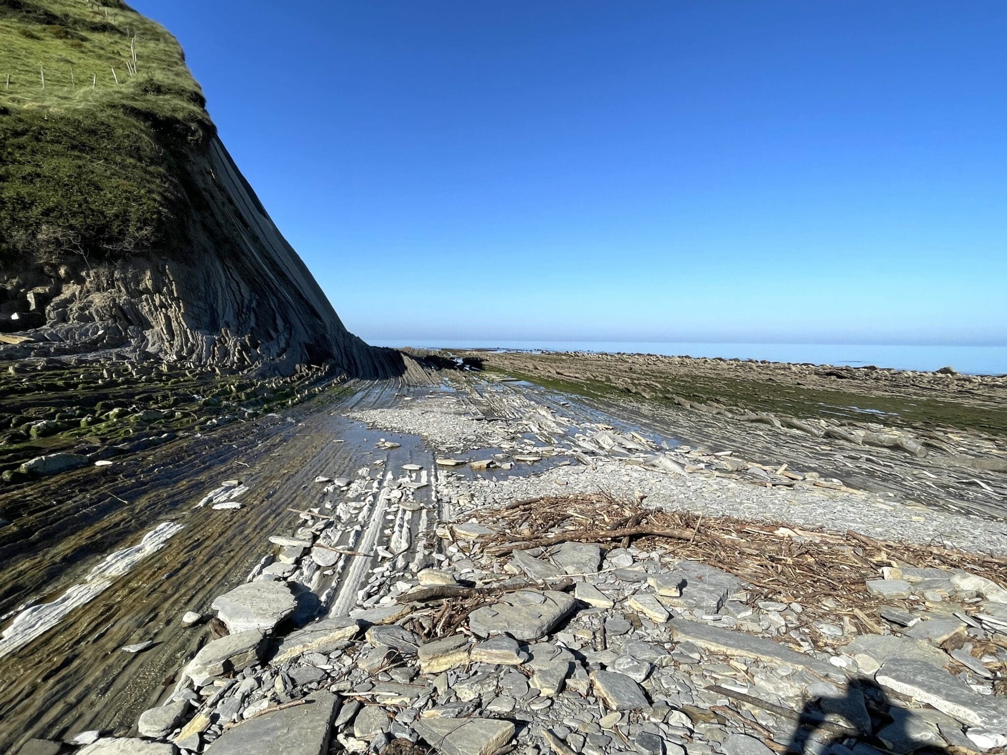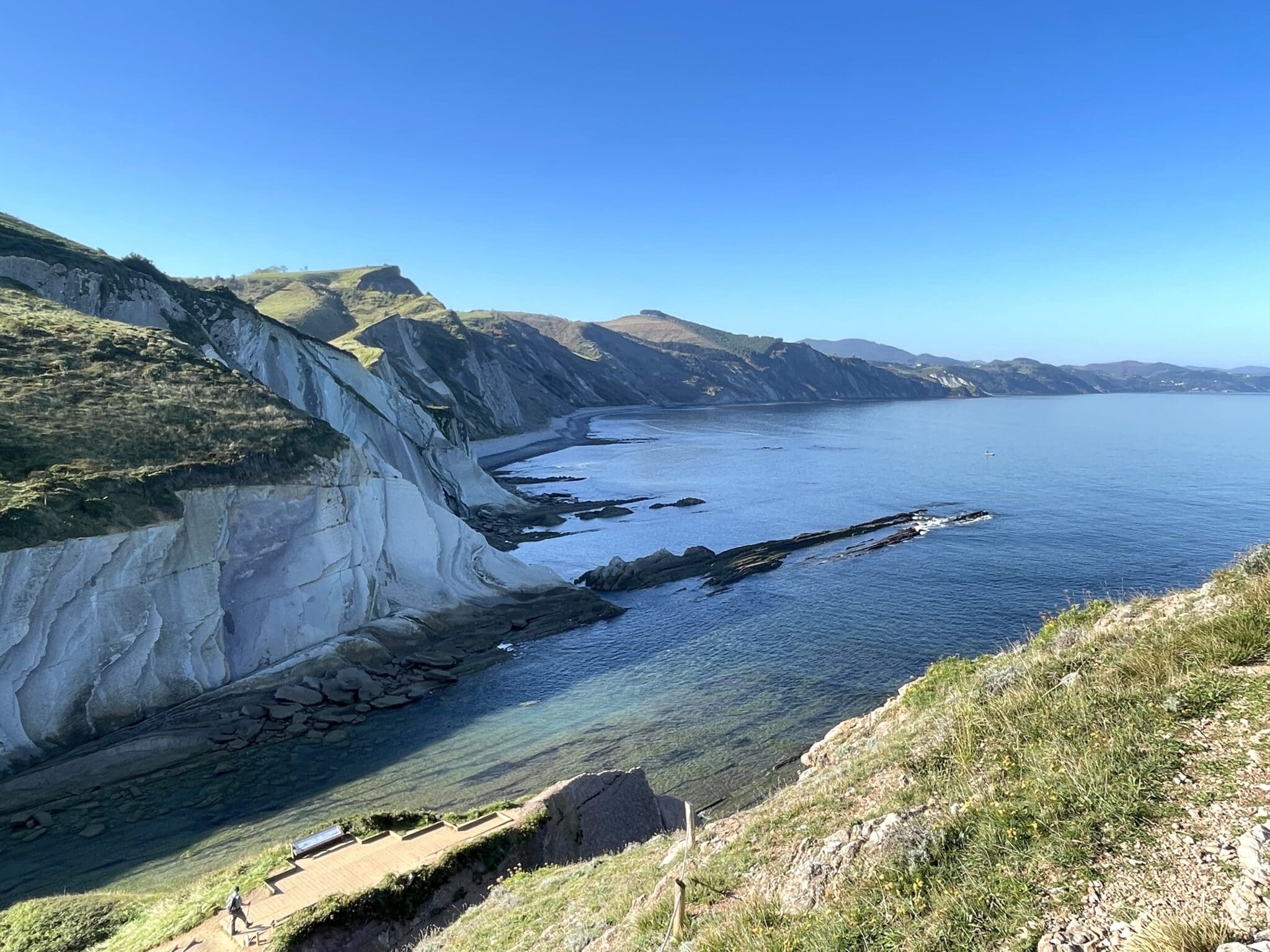Très belle journée ensoleillée de 25 degrés encore. C’est juillet en novembre. Superbe vue dans le Geoparque Basque. Formation géologique exceptionnelle de lattes de pierres dâtant de 60-65 millions d’années. Nous sommes dans un superbe camping pour 5 jours.