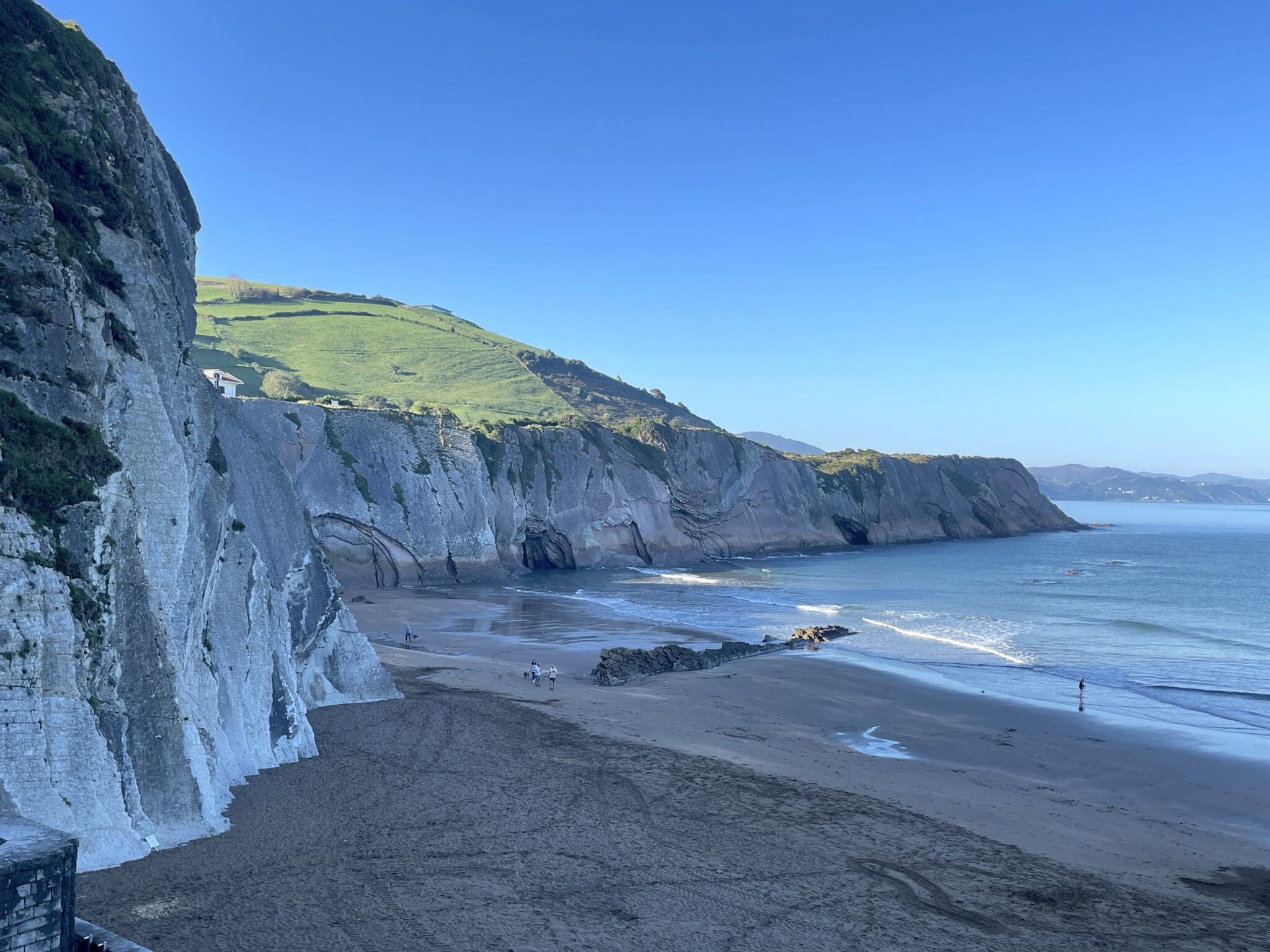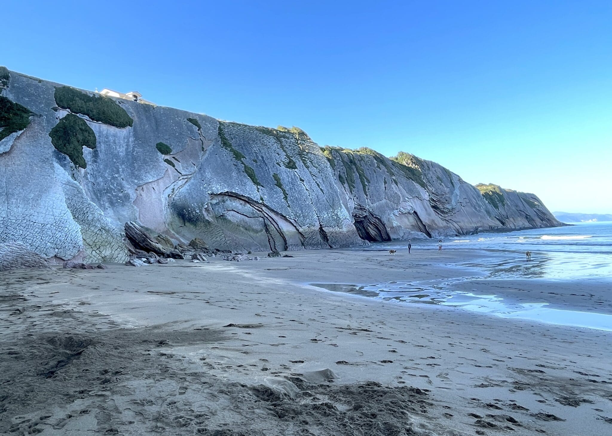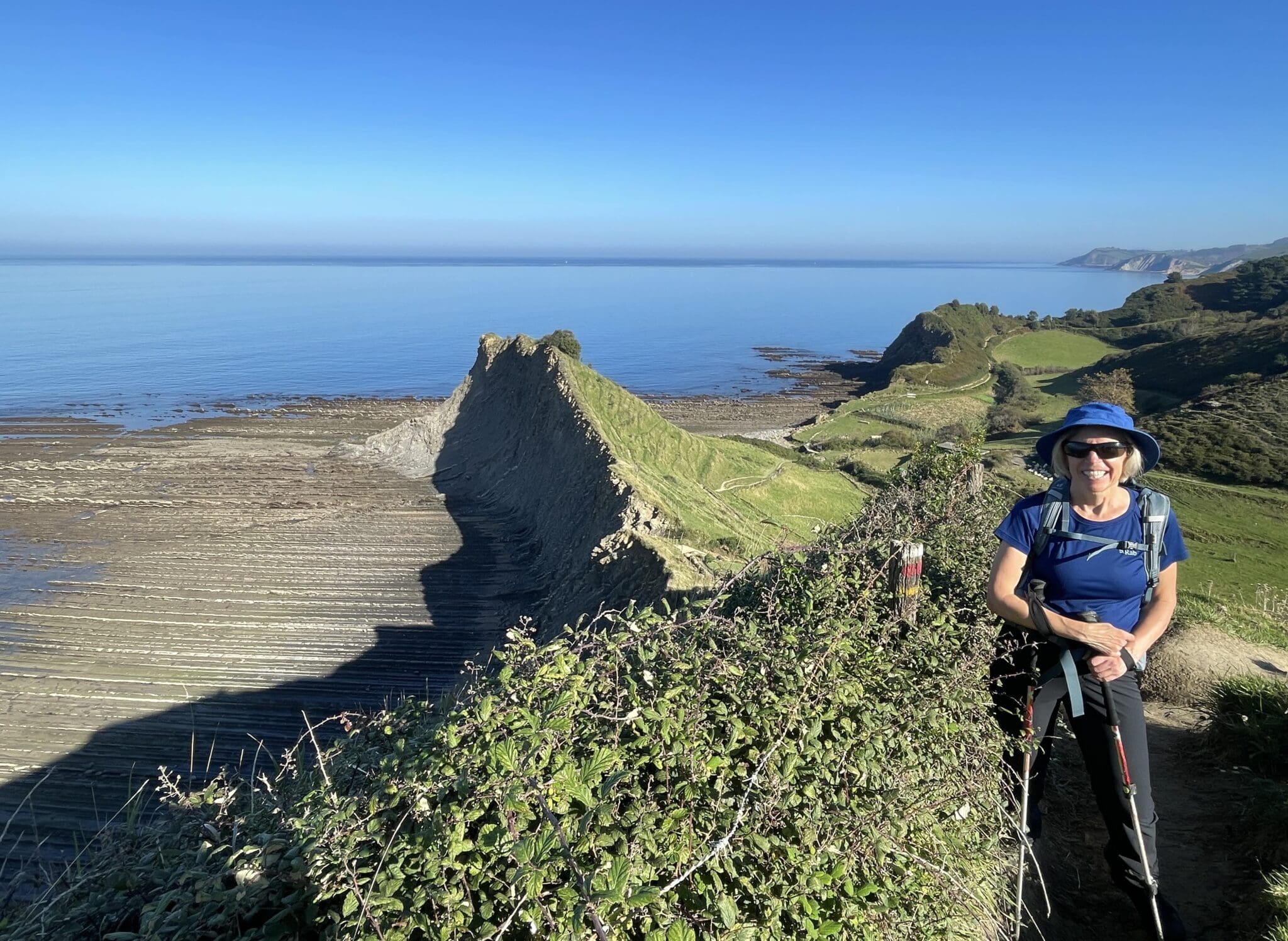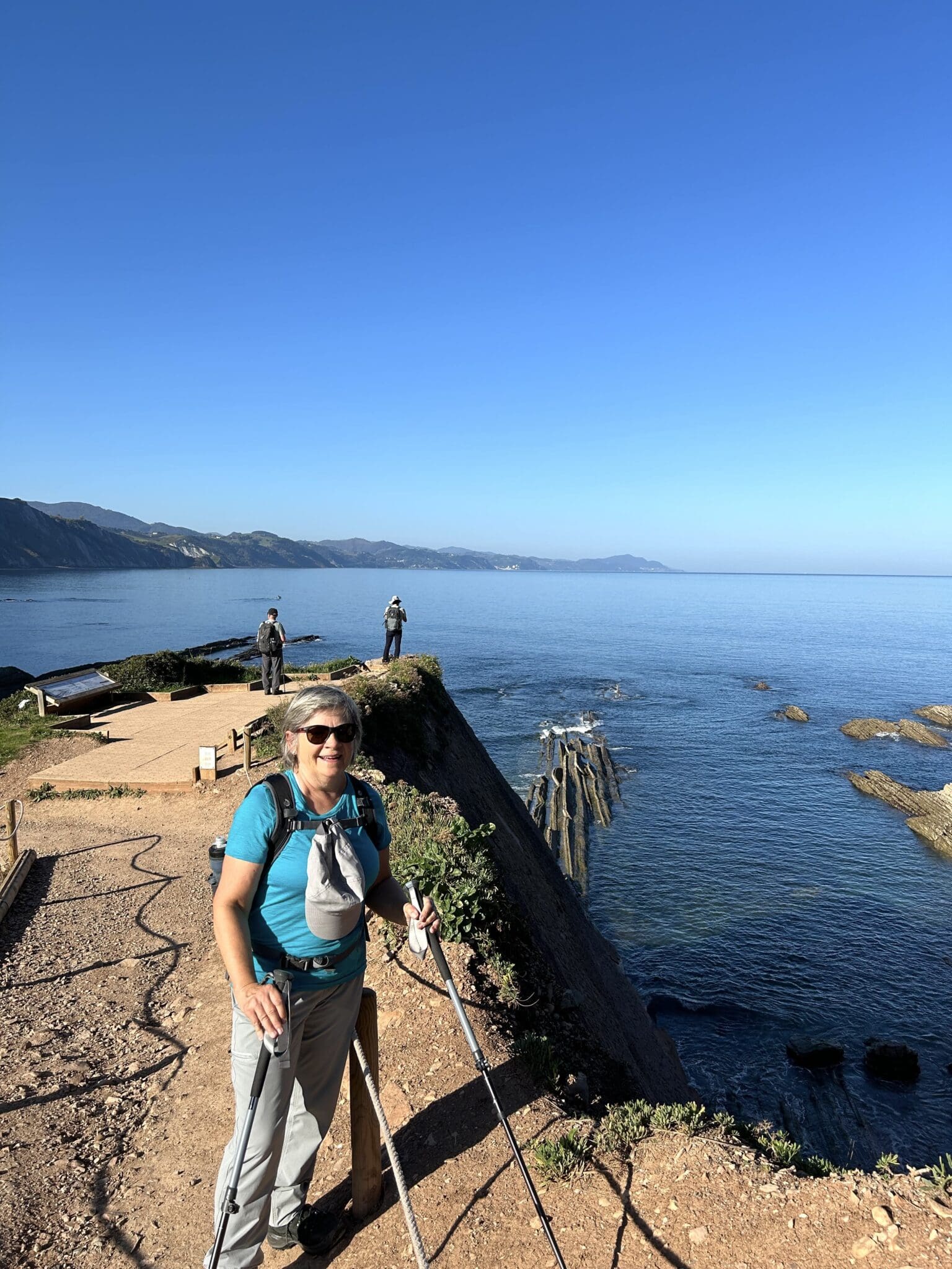 Très belle journée ensoleillée de 25 degrés encore. C’est juillet en novembre. Superbe vue dans le Geoparque Basque. Formation géologique exceptionnelle de lattes de pierres dâtant de 60-65 millions d’années. Nous sommes dans un superbe camping pour 5 jours.